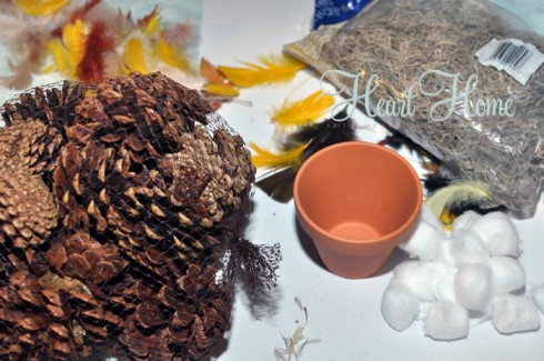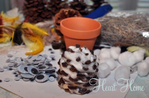 Here is what you need for the pine cone owl craft: