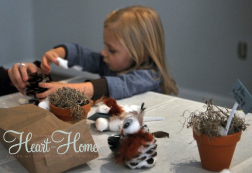 - Tuck some moss in the clay pot to make a comfy nest and place our owl over it.